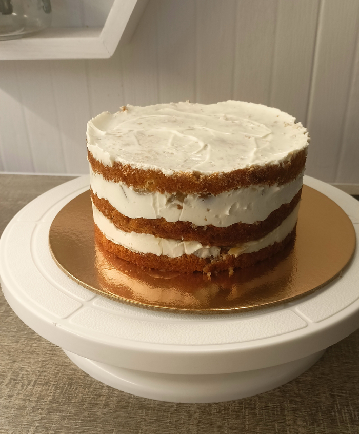 Вниз кладу первый корж. Пропитываю (я прям оочень хорошо пропитала, ушло по 50г на каждый корж. Пропитки оказалось даже многовато - торт немножко потек. Наверное в следующий раз чуть меньше пропитаю).Покрываю корж кремом.