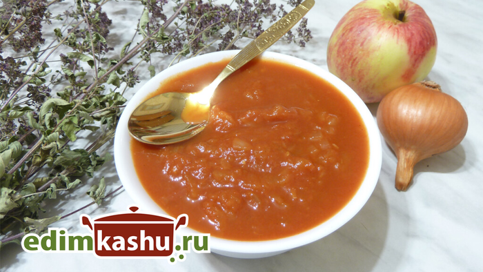 Сегодня я буду готовить очень вкусный домашний кетчуп на зиму из томатов, лука и яблок. В зимние заготовки из томатов, такие как сок, томаты в собственном соку, лечо с болгарским перцем, кетчуп я не добавляю уксус. Эти овощи сами содержат достаточное количество кислоты. Это позволяет консервировать томаты без уксуса. Рецепт сегодняшнего кетчупа из этой серии. Для него мне понадобятся томаты, яблоки и лук. Это основные продукты. А в дополнение к ним потребуются, как обычно, соль и специи.