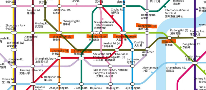Это станции JinAn Temple (читается как Дзин Ан), прогулка с Nanjing West Road до Nanjing East Road и дальше до набережки.