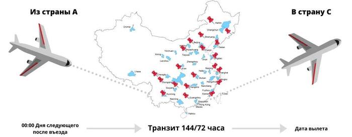 Например, транзитом через КНР будет считаться маршрут Москва – Гуанчжоу – Бангкок, или Санкт-Петербург – Шанхай – Сеул, но не Москва – Пекин – Новосибирск или Санкт-Петербург – Шанхай – Москва.