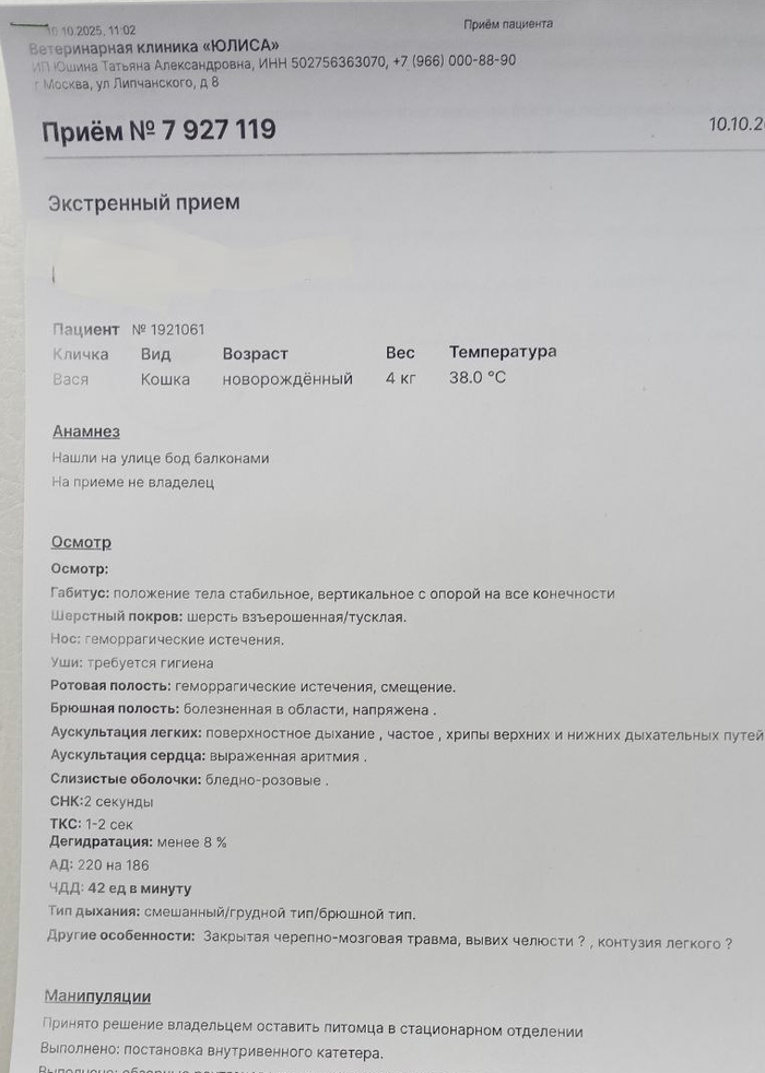 > «У меня денег нет, я сирота, не смогу лечить. Заберите вы или кто-нибудь. Просто попрощаюсь с котом».