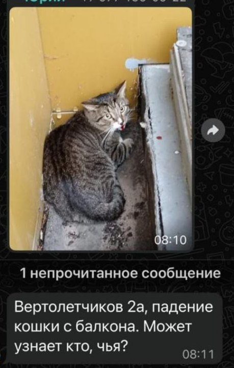 Кот выпал с неизвестного этажа - хозяйка не знает, с какого именно. Соседи говорят: теряла его уже не раз.