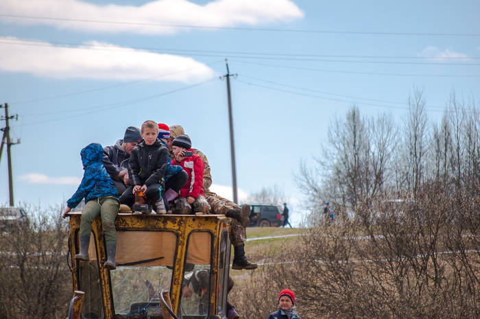 За ручьем начинается основное болото. Движемся уверенно, хотя, колея за нами сразу же заполняется водой. Добрались до противоположного края, Развернулись. Едим обратно своей колеёй. Машина начинает глубже проваливаться в промятый и размокший снег. Запаса клиренса с трудом хватает. Ближе к середине болота начинаем, местами, садиться на днище. Приходится сдавать назад и с разгона проходить участки, где снега между колеями было больше дорожного просвета. Выехать же из колеи на целину не получалось. Быстро темнело. Когда до второй машины оставалось метров сорок, окончательно встали.