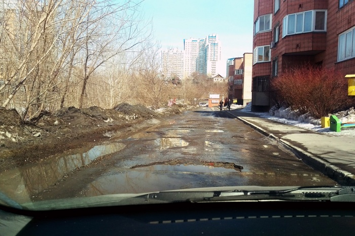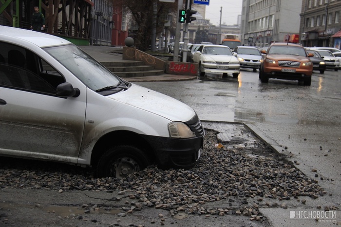 Новосибирские водители проваливаются в асфальт, а на парковке проросли оголённые штыри арматуры