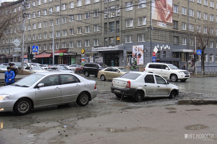 Ещё один провал на улице Охотской: в глубокую яму угодили сразу два автомобиля по пути к детсаду № 60 в Заельцовском районе.