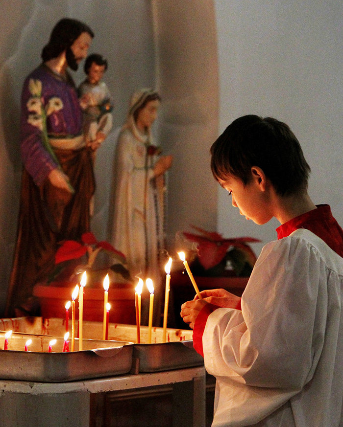 Мальчик-католик на праздничной службе в храме