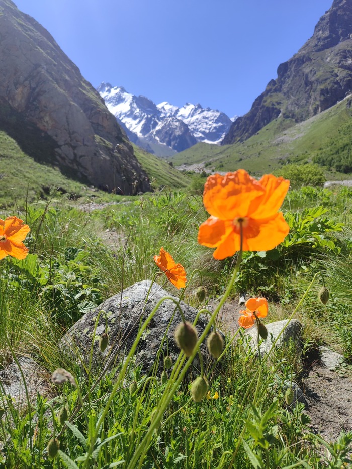 Сбылась давняя мечта, я увидел сердце Кавзказких гор - Безенгийскую стену . Это 12 километровая гряда пятитысячников. А у подножья лежит самый большой кавказкий ледник.