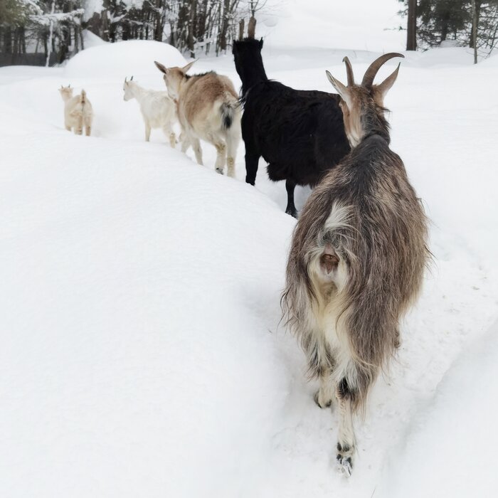 Из-за горя, постигшего меня этой осенью, а именно - нападения стаи бродячих собак на моих козлят, уцелевшую козочку я спрятала в бункер, и там уже было не до красивых стен и вентилируемых застенков. Планировалось запустить бункер в проходящую зиму и посмотреть, как ведёт себя дренаж, сыро ли, сухо ли, держит ли тепло, но, в свете осеннего нападения, проверяли уже боем.