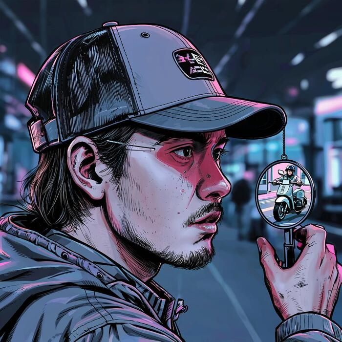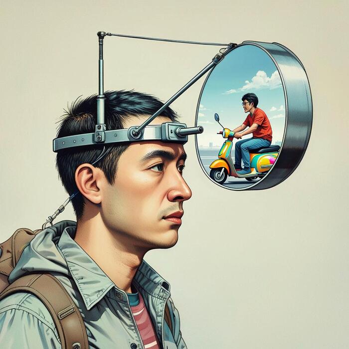 Прикрутить к голове зеркало заднего вида для пешеходов или носить мини-зеркало на козырьке кепки (шутка или киберпанк, даже не знаю)