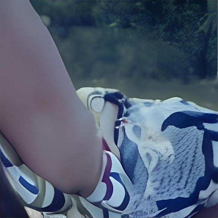 Затем опять понеслась всякая абстрактная муть на фоне речек. Время тратилось впустую, счёт попыток шёл на десятки и меня этот процесс начал уже потихоньку доставать. Чтобы хоть как-то выместить злость на непонятливую нейросетку, я начал к каждому следующему повтору строчки про злополучную Таню с мячиком добавлять восклицательные знаки. Программа, вероятно, что-то поняла и стала добавлять на рисунок части тела. Но складываться в целую Таню они у неё всё равно никак не хотели