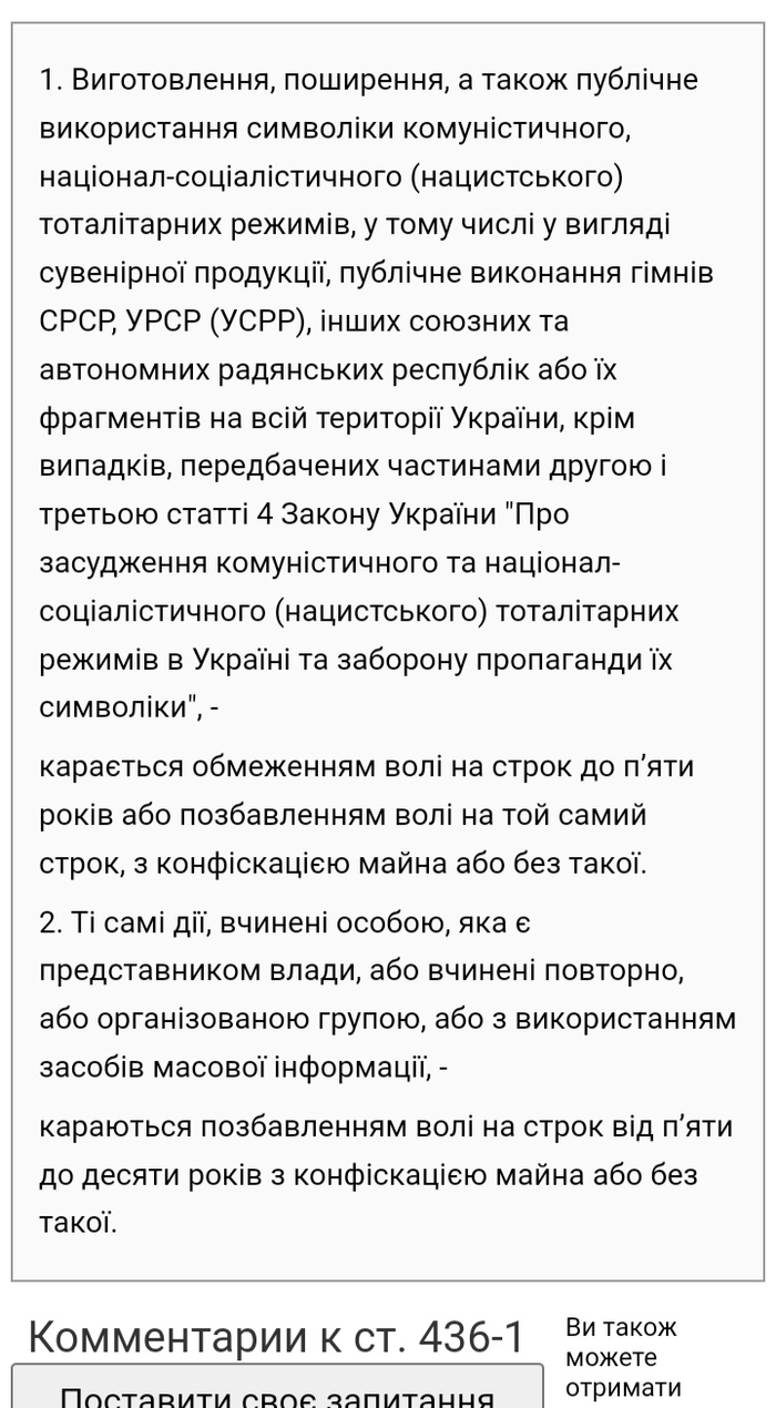 Извините, что на украинском, надеюсь , смысл понятен. Сегодня меня осенило, в чём я виновата. Я выложила фото папы во время службы в армии. Понятно какой страны, если он 1950 года рождения. Да, так что виновата, признаюсь, там , скорее всего, был герб страны, которая индустриализовала Украину и построила Харьков в его нынешнем контуре. Достижениями этой страны по строительству жилых и нежилых помещений вовсю пользуется нынешнее государство, а символика под запретом. Вот такая коллизия.