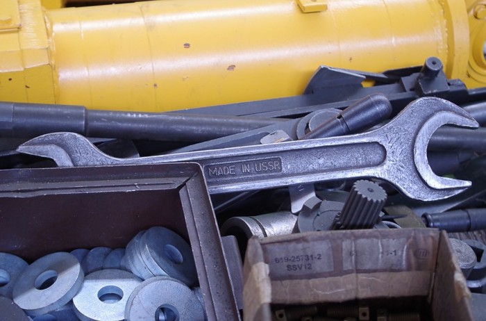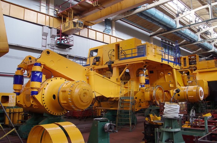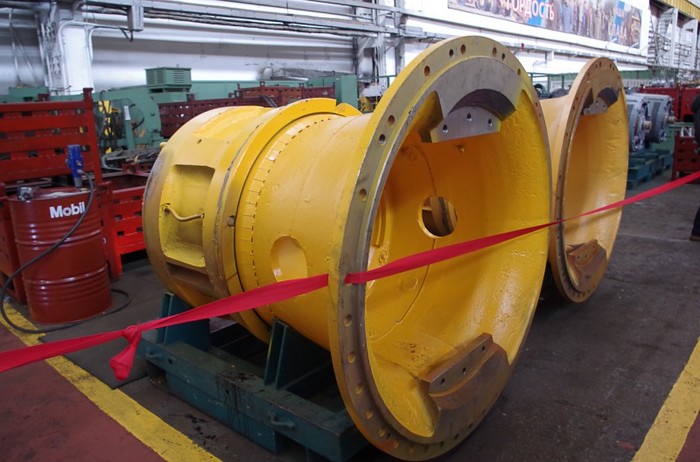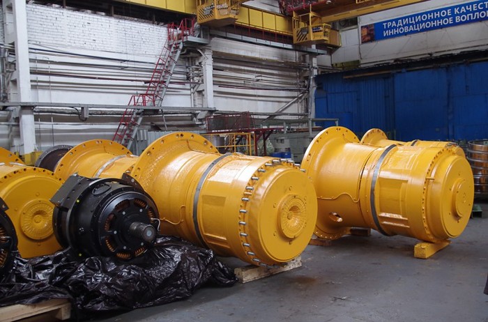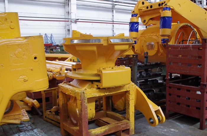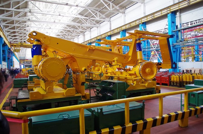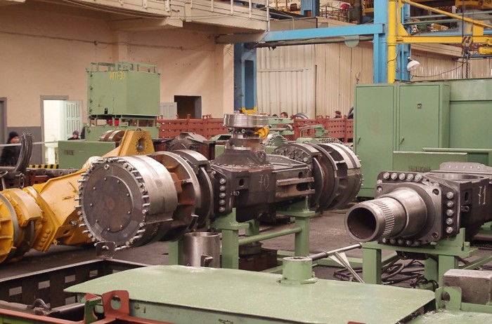 Одними из последних ставятся гидронасосы, если я правильно определил этот агрегат. На гидронасос возложены функции рулевого управления и подъема кузова. Эти системы у БелАЗа объединены.