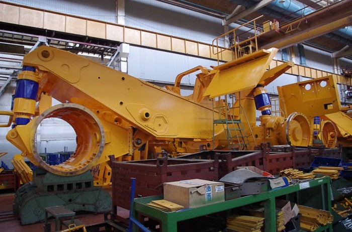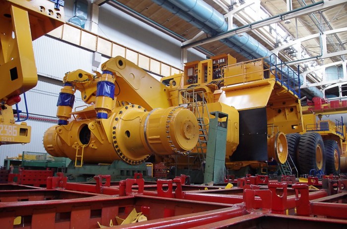 Обзор начинается с монтажно-сборочного цеха №1. Как я понимаю, это самый старый из имеющихся цехов. Здесь находится конвейер по сборке 40-тонных самосвалов, а также вспомогательные производства.