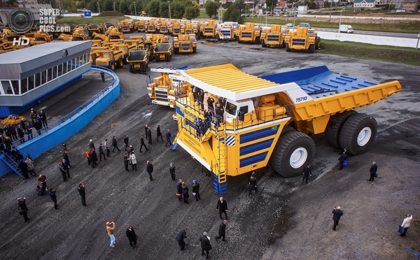 Вот такие машинки грузоподъемностью 450 тонн выпускает белорусский завод БЕЛАЗ (люди на фотографиях для оценки масштаба).