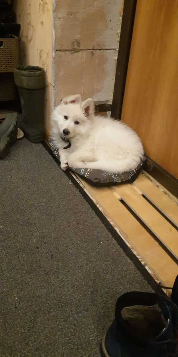 Таким белым писцом мы взяли щенка БШО в 2 месяца. Взяли его на эмоциях 31 декабря 2019 года. Сейчас ему пол года.
