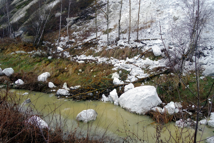 А вот Белая гора - место очень колоритное. Эта техногенная достопримечательность, созданная руками человека, имеет высоту более 200 метров (по некоторым источникам 80, но мне 200 больше нравится) и ширину у основания 700. Гора образовалась благодаря крупнейшему в Европе месторождению фосфоритов и последующему производству минеральных удобрений, в результате чего невостребованный вторичный продукт - фосфогипс многие годы свозился на полигон, который со временем превратился в огромное ландшафтное образование. Фантастические инопланетные пейзажи - это то, ради чего стоит посетить это место хотя бы один раз. Официально гору посещать запрещено, но мы и не стали подниматься и испытывать судьбу, хотя по отзывам некоторых путешественников сделать это не сложно. Впечатлений вполне хватило от просмотра со стороны, и да, мы были в восторге от такого уникального ландшафта. Но, я немного завидую тем, кому удалось побывать на вершине.