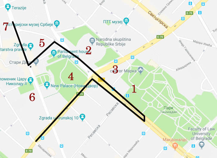 Навстречу группе попались два грузовика и автобус с 20-ю сербскими солдатами. Однако они без единого выстрела сдались Фрицу. Переодевшись в форму югославской армии, Клингенберг и его группа благополучно миновала несколько КПП, обезвредив и захватив в плен их охрану. (Надо заметить, что город с 6 по 10 апреля уже подвергался сильным бомбёжкам в результате которых погибло и было ранено около семнадцати с половиной тысяч человек. Поэтому силы белградской обороны и гражданское население города были уже весьма деморализованы и готовились скорее к длительной осаде, чем к штурму. Так быстро увидеть немецких солдат в городе, никто уж точно не рассчитывал.)