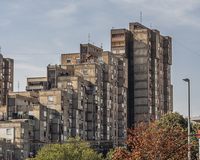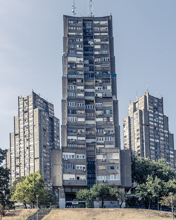 Блоки 22-23 в Новом Белграде, спроектированный архитекторами Душаном Миленковичем, Миланом Палишашким и Иваном Антиком в конце 1960-х, является ярким образцом югославского модернизма.