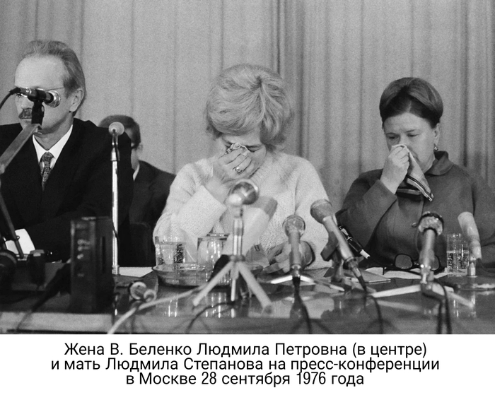 Супругу летчика Людмилу новость о побеге мужа застала врасплох. Осенью 1976 года она участвовала в специальной пресс-конференции и просила Виктора вернуться на родину. Беленко оборвал все контакты с семьей, перестал общаться с сыном. Женщина неоднократно пыталась выйти с ним на связь, однако попытки завершились провалом.