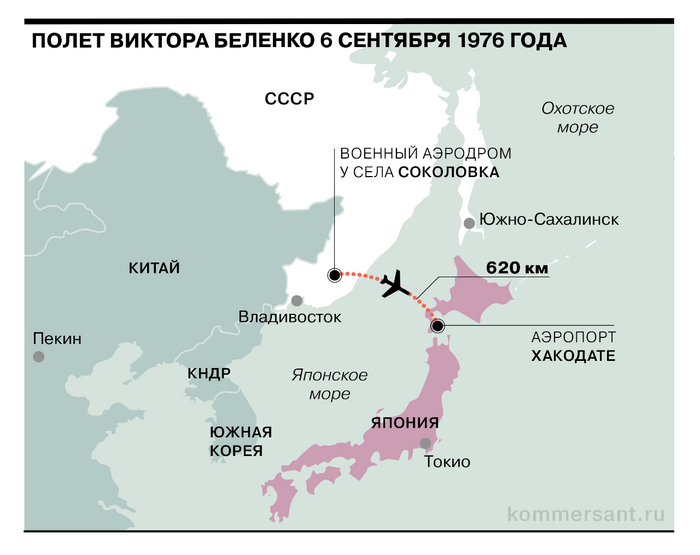 6 сентября 1976 год советский летчик старший лейтенант Беленко, совершая полет на перехватчике МиГ-25, перелетел в Японию и попросил политического убежища в США.