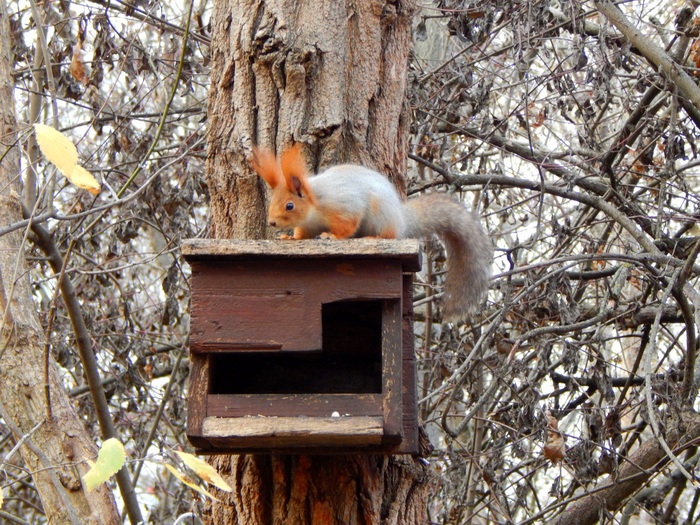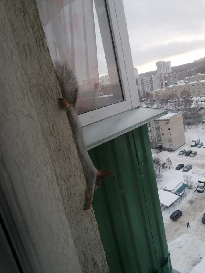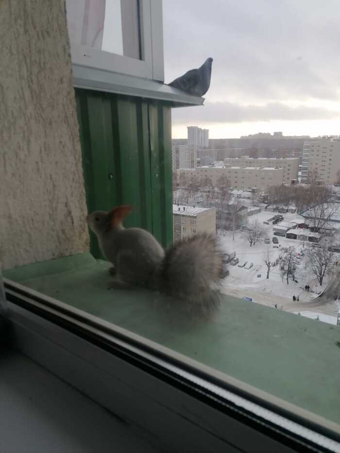 Сегодня апофеозом было пришествие белки!!!! Как она узнала, что тут кормушка есть? Это едрить его так то 16-ый этаж! Они походу все таки межвидово общаются и делятся где можно пожрать.