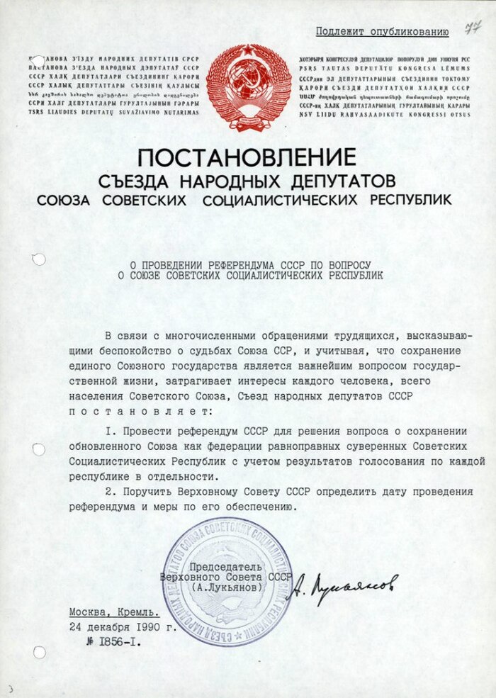 Всесоюзный референдум: за сохранение СССР высказалось более 76 % советских граждан