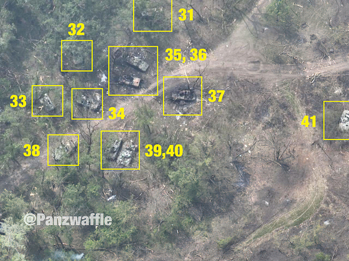 Номера 39 и 40 это танки Т-72, возможно Б. Причем машины не выглядят поврежденными.