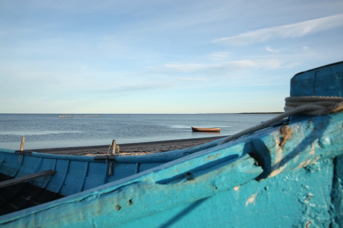 Засматриваюсь на пришвартованные к берегу промысловые ка́рбасы. Надя сказывает, что ка́рбасы лопшарей имеют особенную черту – нижние поясья окрашиваются в смоляно-чёрный цвет, а верхние поясья непременно цветные. Да не просто цветные, а радостных оттенков: небесно-голубые, малиново-розовые, калиново-алые… Ещё сказывает, что поморы никогда не разламывают и не сжигают отслуживший своё или прохудившийся ка́рбас. Его выволакивают на берег, да так и оставляют на распоряжение волн, ветра, песка, птиц и прочих живых существ. Почему-то всплывает в памяти вот это, погребальное: «я́ко земля́ еси́, и в зе́млю отъи́деши». Оно, конечно, для человеческого погребения писано, но будто бы и ка́рбасу упокоившемуся на берегу тоже подходит. Может потому, что значимая часть жизни рыбацкой на нём проходит? Может потому, что навидавшись живых людей и сам под конец свой живым ка́рбас становится?