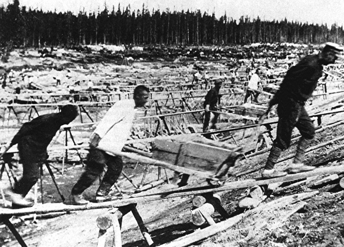 Зачем это было нужно?Водный путь, соединяющий два моря - Белое и Балтийское, России был нужен давным-давно: он почти вчетверо сократил бы морскую дорогу из одного моря в другое, делая излишним длительный обход всей Скандинавии. Еще во время Северной войны царь Петр I высказался о необходимости такого пути. Но только в 1900 году был создан первый серьезный проект петербургским профессором Тимановым, за который был награжден золотой медалью Парижской всемирной выставки. Но даже и осененный блеском золота проект не пошел: слишком дорого обходилось строительство. А главное - людским ресурсам неоткуда было взяться в тех удаленных и весьма суровых краях.