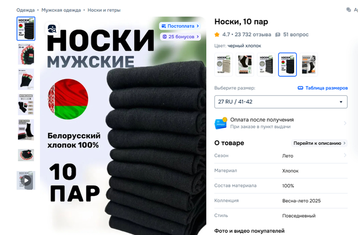 Носки Хлопок (ткани и растение) Ткань Обман клиентов Обман Республика Беларусь Россия OZON
