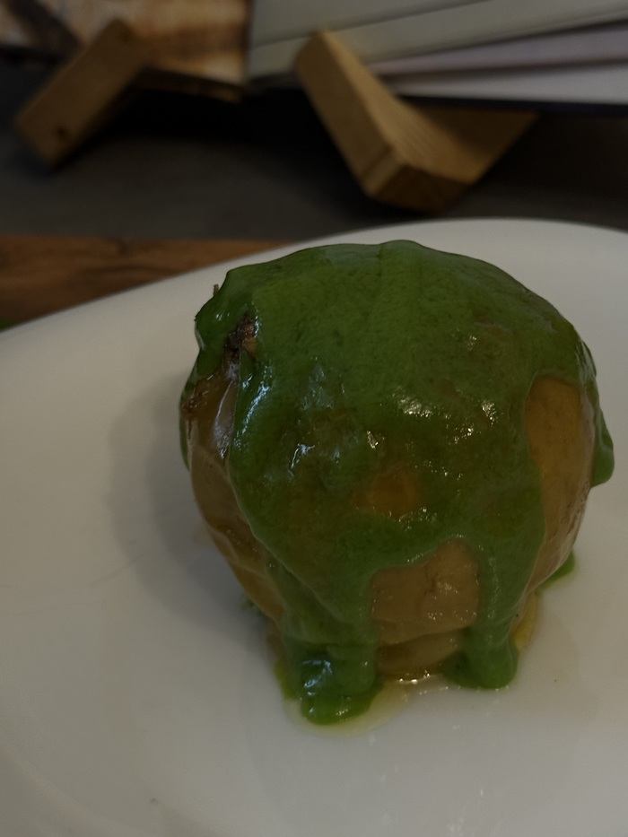 Выложите каждое яблоко на отдельную сервировочную тарелку, затем сверху полейте соусом. Подавайте горячим.