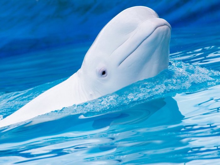 «Весёлый» вид белух обусловлен специфическим строением морды – человеческий мозг воспринимает его как улыбку, а понять мимику животного, которое в следующий миг уже нападёт, могут не все. Также отметим, что белуха – это крупное животное, которое может сбить человека с ног в воде, даже не желая того.