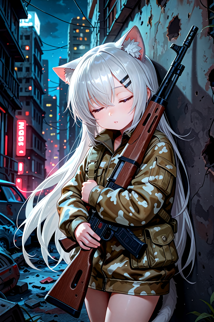 32 AviDust 2 месяца назад Аниме Серия Нейросетеняшки Пост-апокалис Показать полностью 4 [моё] Stable Diffusion Anime Art Аниме Арты нейросетей Белые волосы Кицунэ Неко Loli Голубые глаза Цветные волосы Рыжие Длиннопост 1 1 1 Ещё 0