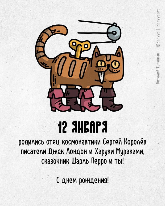 В этот прекрасный день на свет появились Сергей Королев (который не нуждается в представлении, ибо именно под его руководством космическая программа СССР на шаг опережала всех остальных), и три писателя: Джек Лондон («Белый клык»), Харуки Мураками («Хроники Заводной Птицы») и сказочник Шарль Перро! Но самое важное событие, это твой день рождения! Желаю тебе всего того, что ты сам себе желаешь!