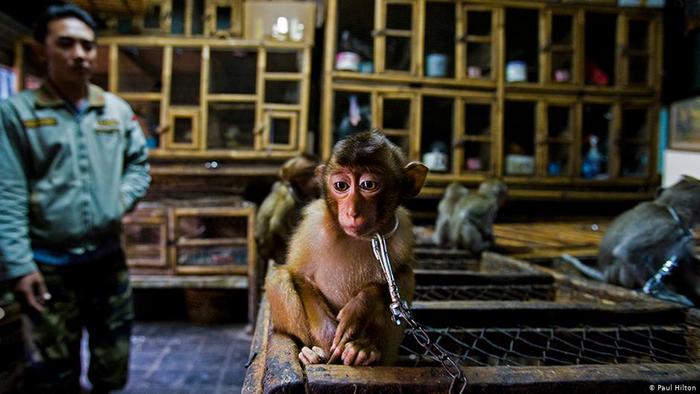 Макак, запечатленный Полом Хилтоном, продавался на рынке Бали в качестве домашнего животного, и эта история с фотографией о зачастую трагичной судьбе отлавливаемых на острове животных победила в номинации «Фотожурналистская история»: