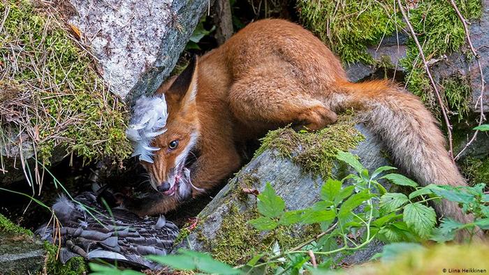 Лиина Хейккинен из Финляндии победила среди молодых, подающих надежды фотографов 15-17 лет, за фотографию лисы, охотящейся за гусем: