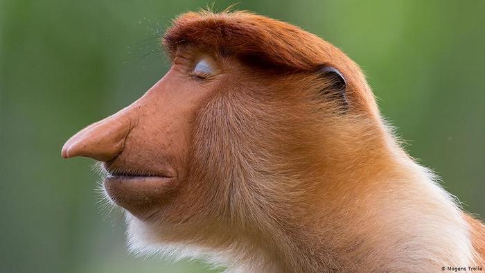 Могенс Тролль с фотографией носача, которые водятся только на острое Борнео и окрестностях, наслаждающегося солнышком (номинация «Лучший портрет животного»):