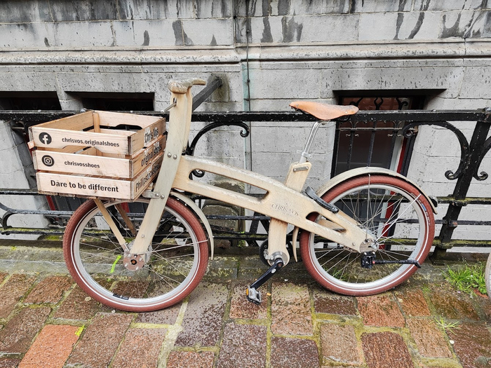 велосипед с рамой из дерева выставлен в рекламных целях