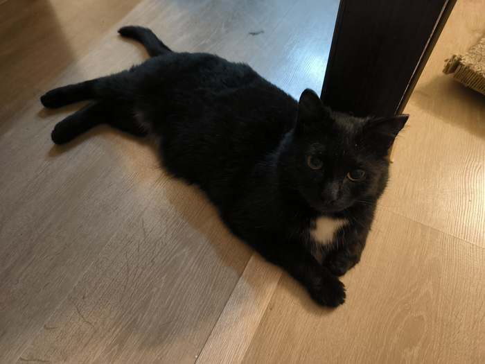 Слава имел интересный окрас: почти весь был чёрный (даже усы - впервые я встретил кота с чёрным усами), а грудка и животик были белые-белые.