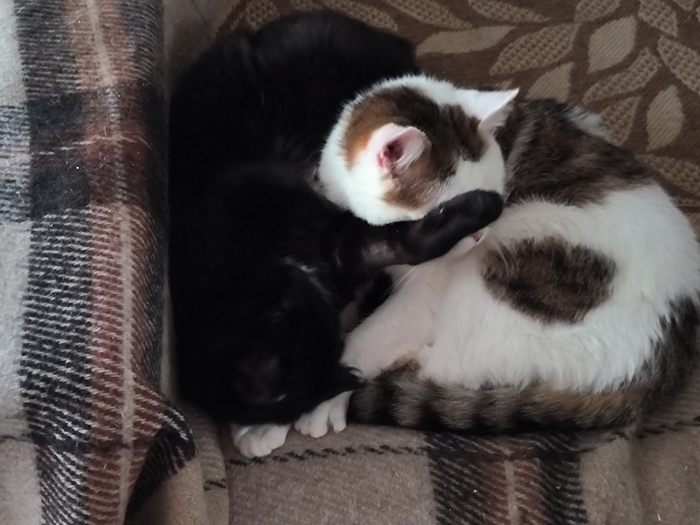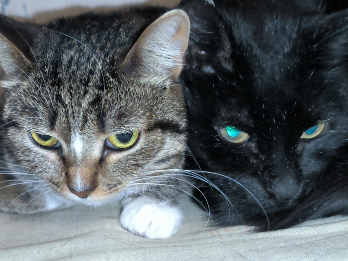 Вместе делили ложе - пожалуй, это высший стандарт дружбы, когда коты только что вдохновенно сражались друг с другом, а через 10 минут уже спали в обнимку.