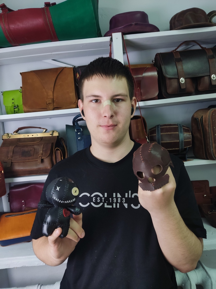 Именно из этих кусочков нубука (разного цвета) ещё юнный Роман делал свои первые изделия. Эх, помню как я ездил на промзону, из огромных тюков выбирал в отдельный мешочек такие вот кусочки побольше. Ещё ветер, дождь, прохладно. А денег не было, а там продавали эти обрезки по весу, дёшево было. Я по итогу за год оттуда мешков 14 вывез. Эх, ничего ещё не было, была только идея. Ни кабинета, ни инструмента, ни знаний. Мне нравилась сама мысль, что ребята смогут заниматься творчеством. И во что превратилось? Уже несколько десятков выпускников, сколько изделий и мастер- классов и не сосчитать. Уже шьём работы замечательные. Помню магию Пикабу☺️ когда десятки незнакомых людей отправляли инструмент и кожу просто поддержать. Какой путь проделан, а первая кожа вот, ещё лежит передо мной. Круто.