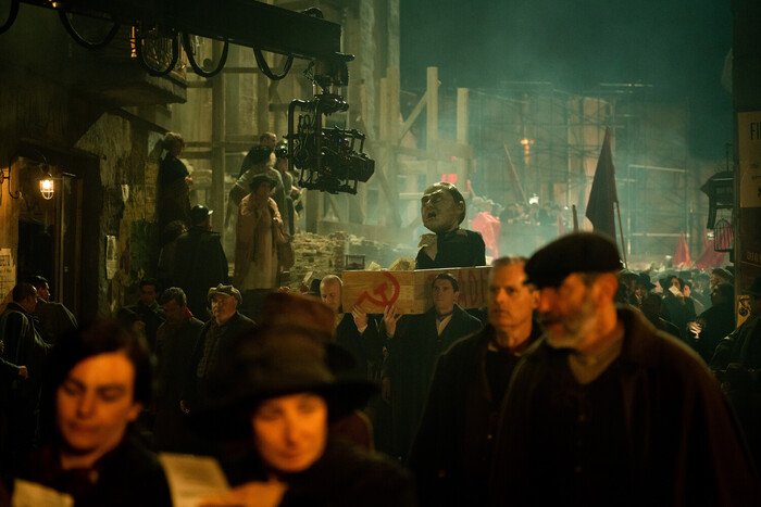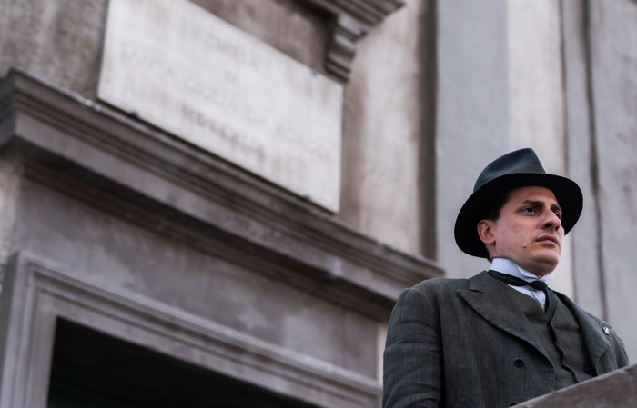 Например, ему бы понравилось, как начинается сериал. Графические кадры из современных новостей показывают бесславный конец Муссолини, когда с его изуродованного трупа публично сдирали кожу все, кто хотел. Тем временем Лука Маринелли обращается к нам из могилы — голосом, который мы хорошо узнаем во всех его проявлениях, — и напоминает, что не так давно все его любили.