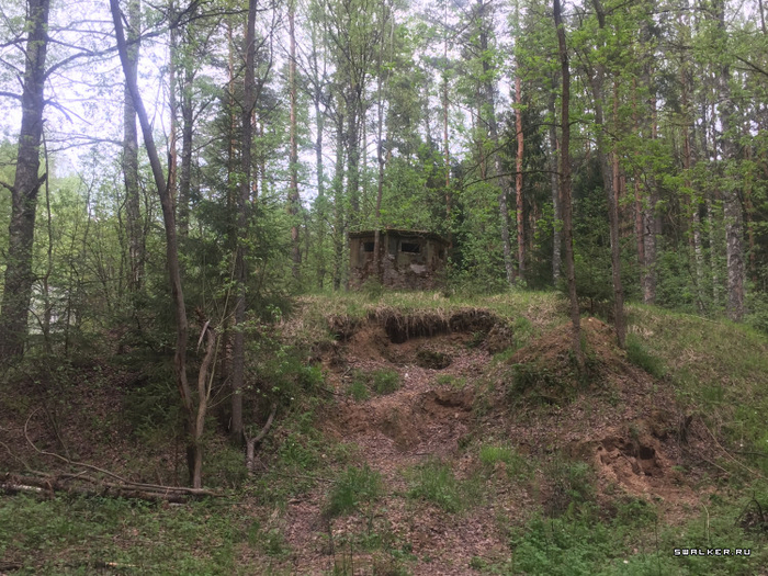 На вершине насыпи находится бетонный колпак, похожий на пулеметное гнездо. Это пост химической разведки.