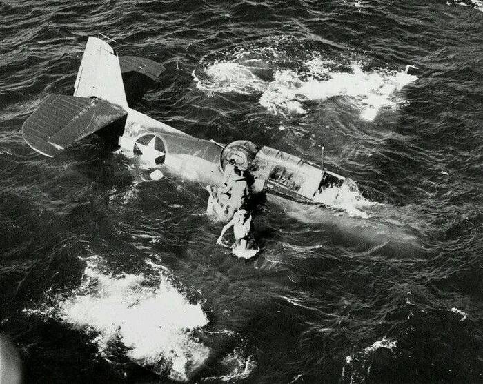 Этот 113-ый номер из 82-й торпедоносной эскадрильи с авианосца «Беннингтон». Пилот дотянул до корабля, но совершил посадку на воду. Весь экипаж был спасён.
