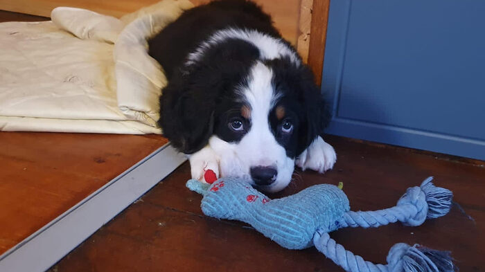 Шкодливый щенок бернского зенненхунда (2-3 месяц)