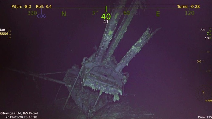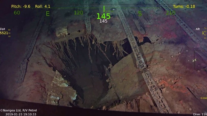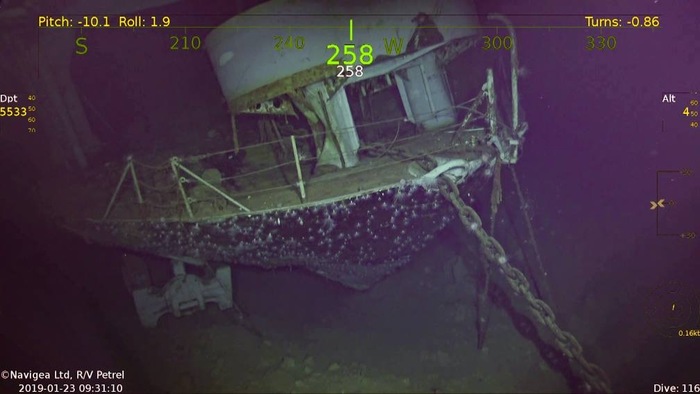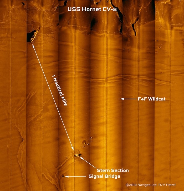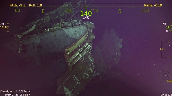 Съёмки затонувшего 26.10.1942 года у Соломоновых Островов американского авианосца USS Hornet (CV-8). Останки затонувшего корабля были обнаружены 12 февраля 2019 года экспедицией, базировавшейся на борту научно-исследовательского судна RV Petrel. Экспедиция финансировалась фондом Пола Аллена — сооснователя компании Microsoft.