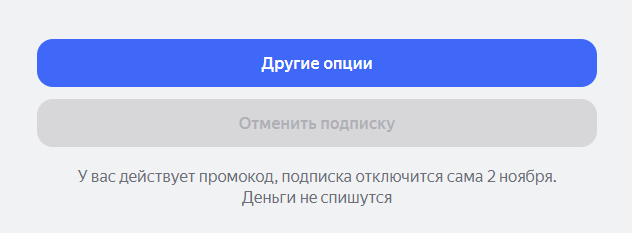 Отменить самостоятельно подпиську не могу, но яндекс любезно сообщает, что деньги за неё не спишутся