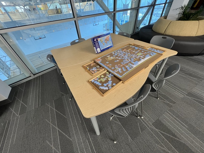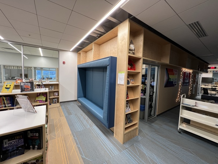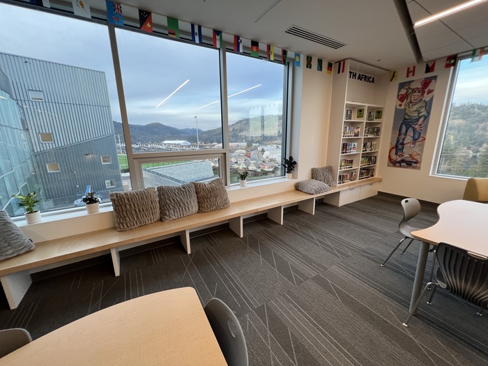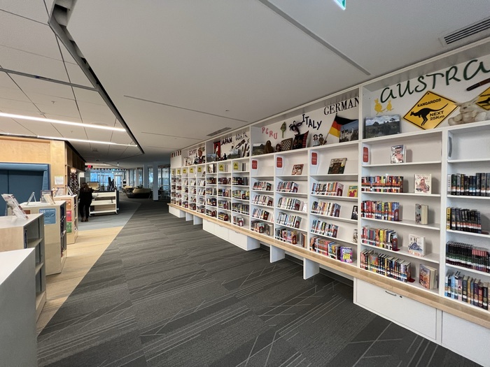Библиотека разделяется на несколько зон. Начинается с зоны для чтения и презентаций: