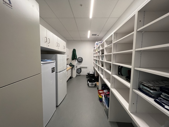 "Подсобка" с холодильниками, стиральной и сушильной машинами, продуктами, полотенцами, посудой и т.д.: