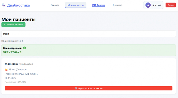 Кроме установки на телефон сделал кабинет для ветеринарных клиник. Если вы ветеринар - можете зарегистрироваться, получить свой код, дать его владельцам животных. Они подключатся к вам по коду, и вы будете видеть всех своих пациентов в одном месте с графиками и историей.